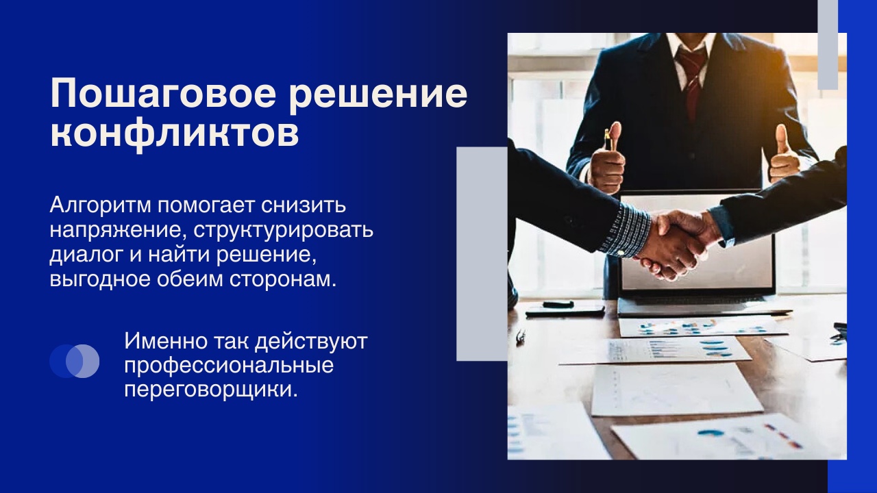 Конфликт — это естественная часть любых взаимоотношений: в бизнесе, команде или семье. Однако, поэтому умение правильно управлять конфликтом отличает опытного переговорщика от обычного участника диалога